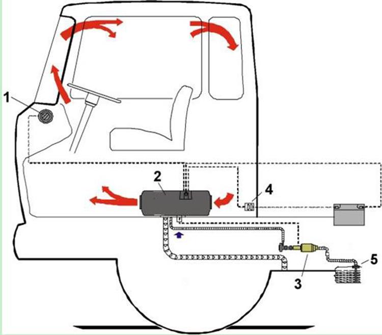 Glavni grejač može biti instaliran kako unutar tako i izvan vozila. Ako je grejač ugrađen van vozila, mora se preduzimati mjere kako bi se izbjeglo prskanje vode na grejač. Za ugradnju mora biti dovoljno prostora za udobnost protoka grijanja i ugradnje grejanja, održavanje glavnog grijača.